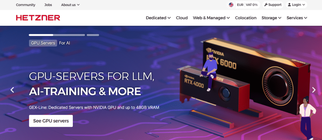 Hetzner is a Europe-based hosting company that is popular among developers for its high-performance servers, budget-friendly pricing, and robust infrastructure. They offer a range of services, including dedicated servers, cloud hosting, Kubernetes management, and storage options, catering to every type of project.