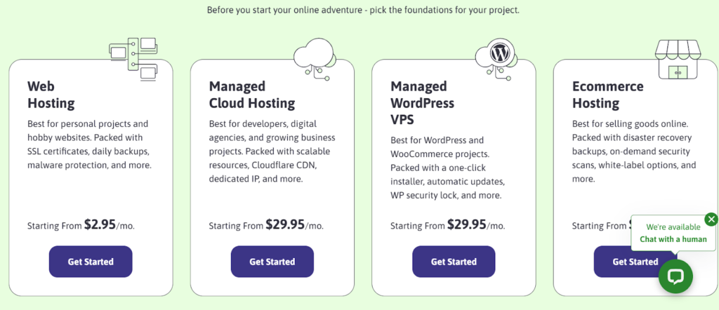 Hostinger Pricing: Plans begin at $2.99 a month. They all come with a free SSL certificate, a 1-year domain, and 24/7 support.