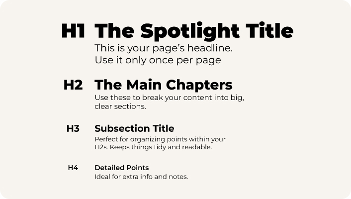 Organize content using a logical heading structure: H1, H2, H3 etc. This helps screen reader users quickly scan and understand page structure. Avoid skipping levels (e.g., going from H1 to H4), and don’t use headings just to style text.