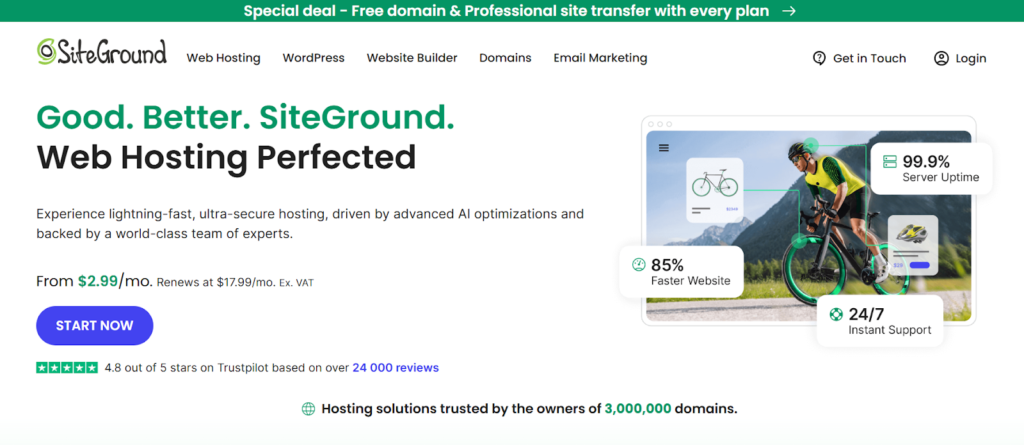 SiteGround is a hosting provider suggested by WordPress, designed for individuals and businesses who would like a reliable service and support for SEO.