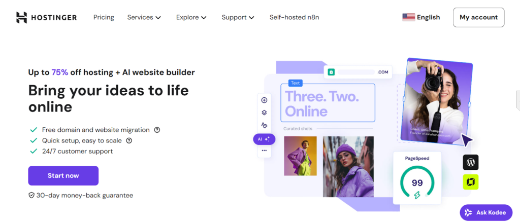Hostinger is a budget-friendly hosting platform. The platform has an easy-to-use interface and fast servers, perfect for individuals, small businesses, or SEO-oriented sites that require stable speed and uptimeat a low price. Hostinger also has an easy-to-use control panel, making website management quick and easy.