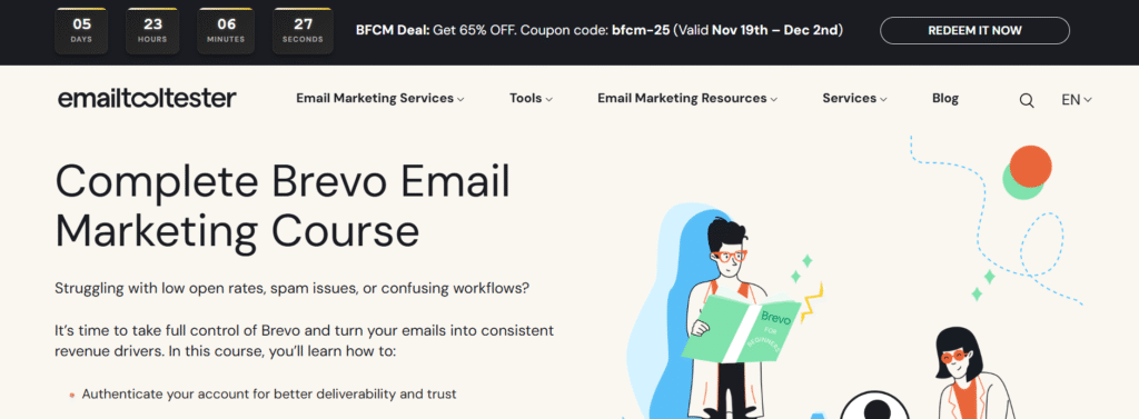 Get 65% off EmailTooltester’s Full Brevo Email Marketing Course with code bfcm-25 from November 19 to December 2, 2025