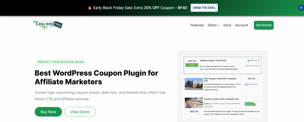 Get up to 60% OFF on WP Coupons & Deals Pro with code BF40 from November 24 to December 5, 2025
