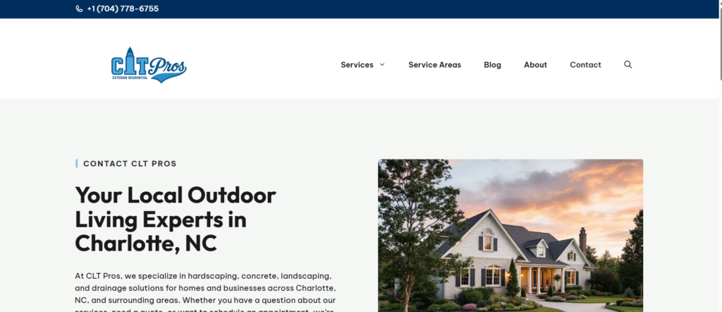 At CLT Pros, we specialize in landscape construction, drainage solutions, hardscaping, and outdoor space design that enhances both aesthetics and functionality. Based in Charlotte, North Carolina, our team blends expert craftsmanship, thoughtful project planning, and precision engineering to create outdoor environments designed for long-term sustainability, safety, and human enjoyment. From custom patios and decorative concrete to erosion control and stormwater management, we approach every project with a deep understanding of landscape systems- balancing beauty, durability, and environmental harmony.