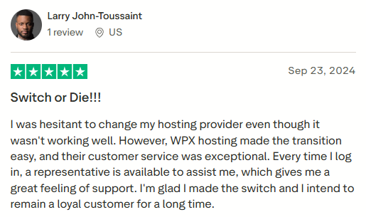 WPX prides itself on exceptional customer service. We offer 24/7 live chat support, which users commonly praise for its speed and effectiveness. Our response times are often blazingly fast, usually within seconds, which is described as the best feeling from our customers when you need urgent help.