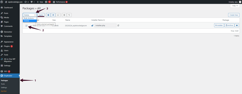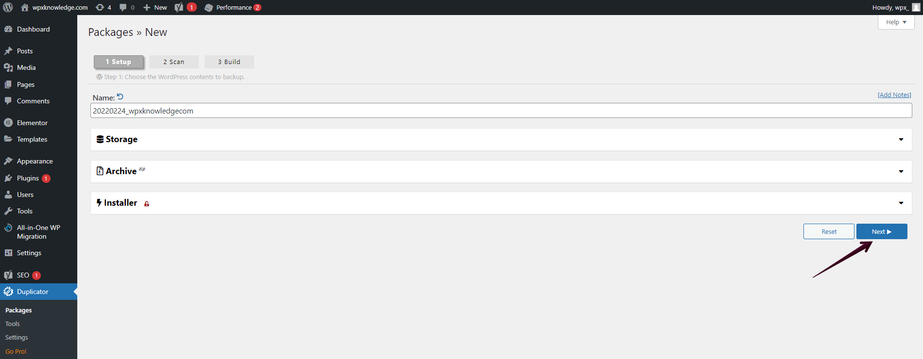 - Go to Duplicator settings
