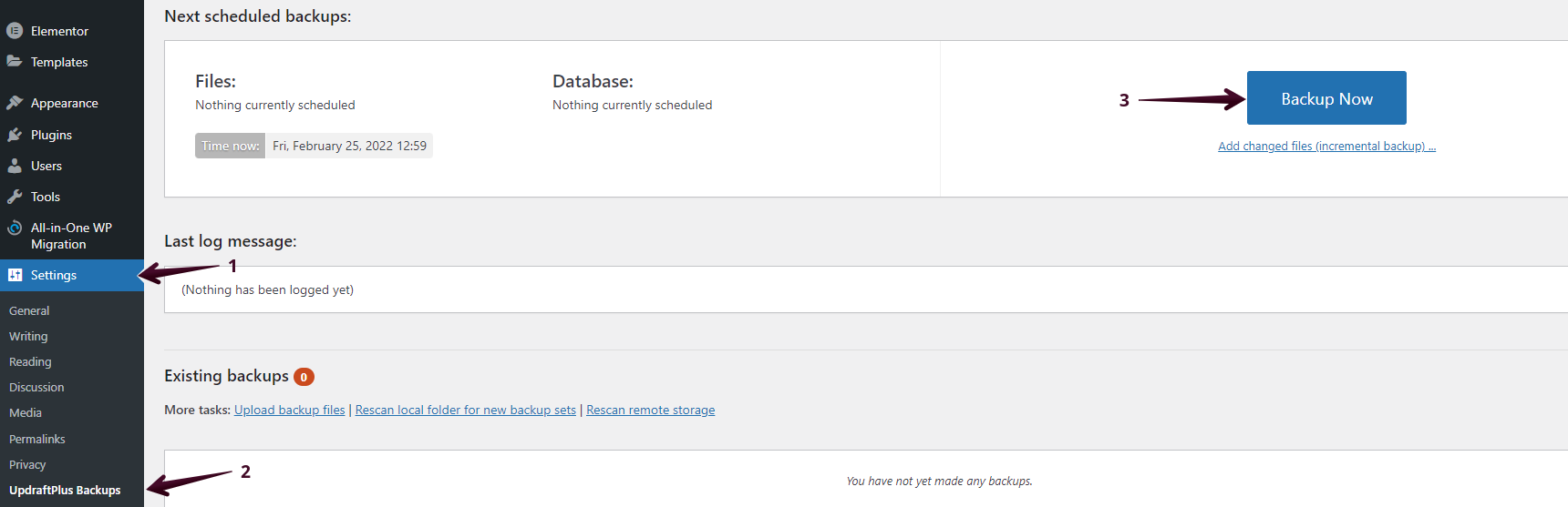 - Click the Backup Now button.
