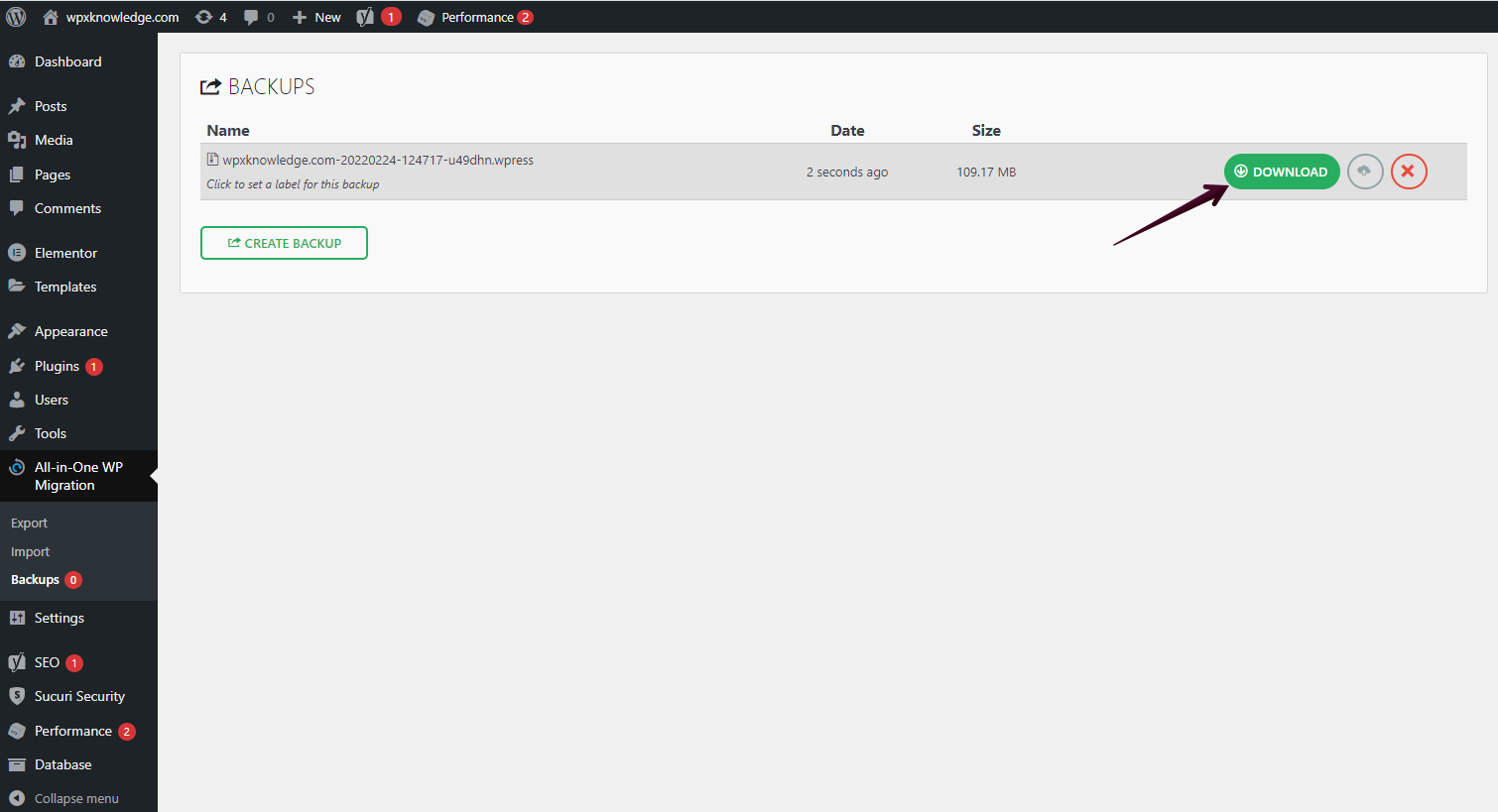 Once you install the plugin, you need to activate it, so you can proceed with creating a backup of your site: