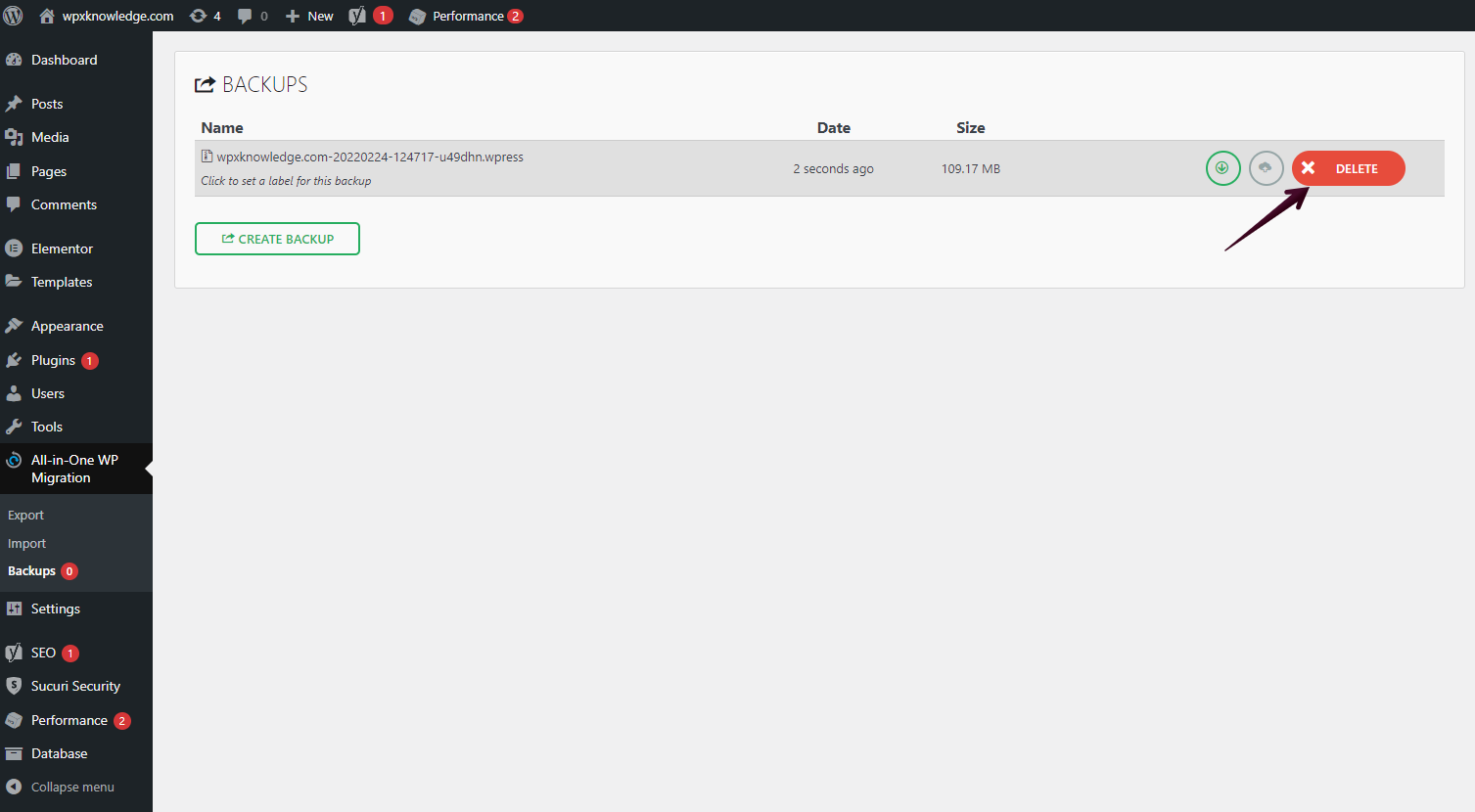- Click on the Create Backup button.