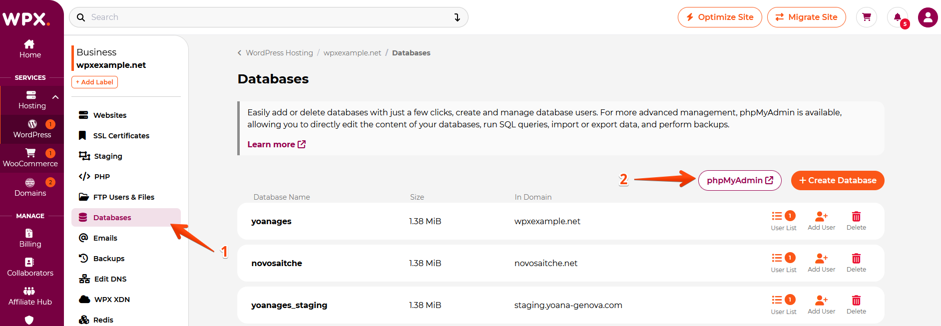 Accessing phpMyAdmin through your WPX Hosting account allows you to manage your website’s databases efficiently. Follow these steps to access phpMyAdmin: