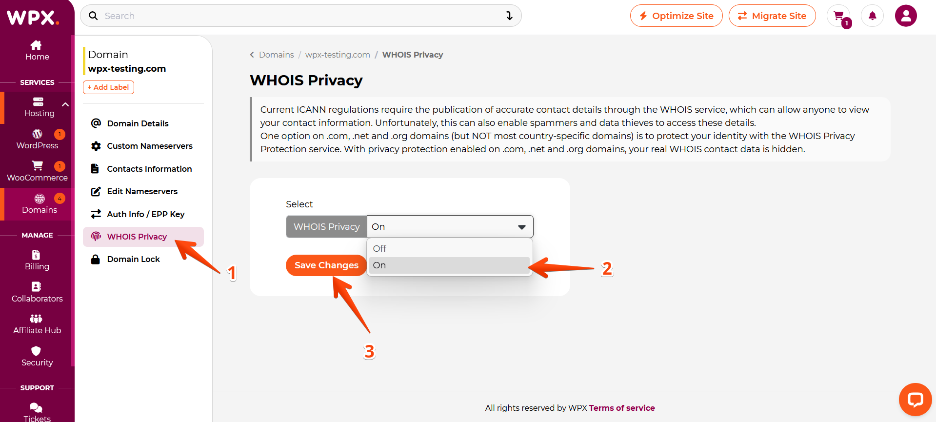 Step 3. Manage WHOIS Privacy