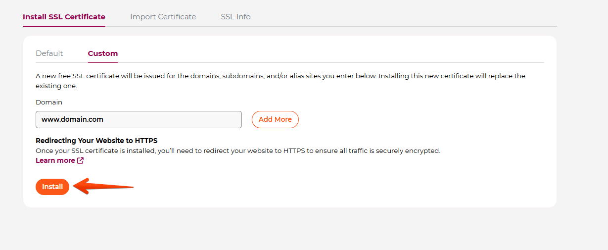 Once done, click Install. You’ve now installed a custom SSL certificate for just the www version of your site.