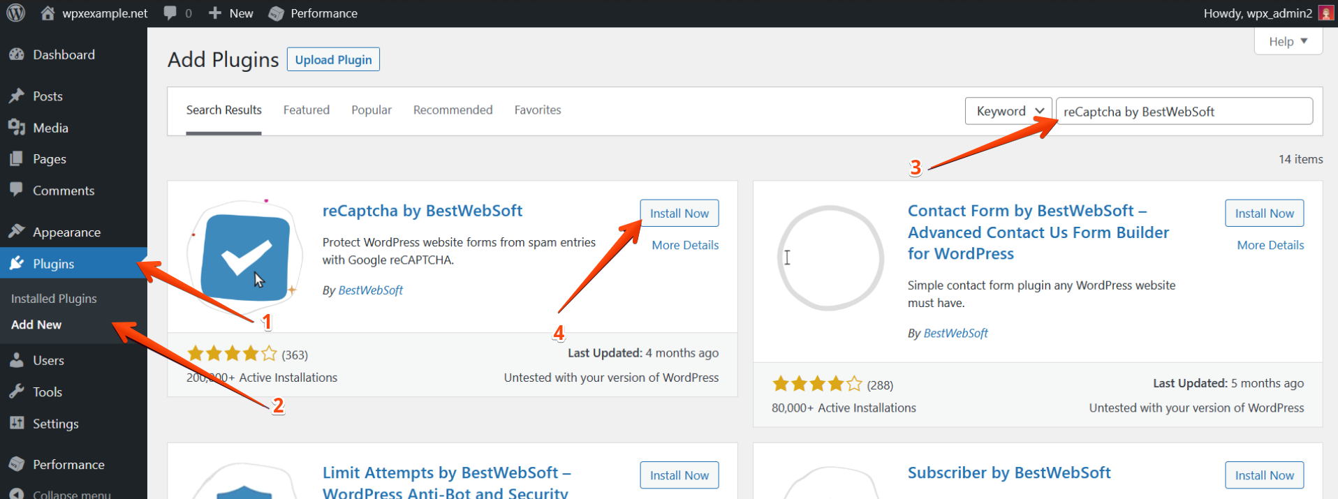 - Enter reCAPTCHA by BestWebSoft into the search bar