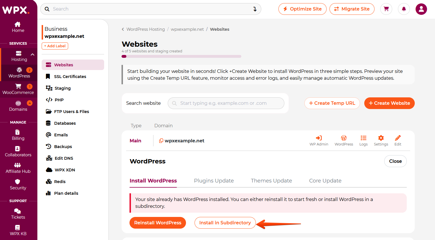 Installing WordPress in a subfolder is very simple and can be done with just a few clicks. We have simplified the installation process for WordPress via our Hosting Panel. Let’s go!