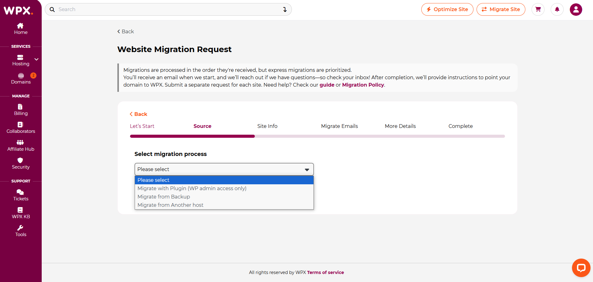 To start a migration with WPX, filling up our Migration form is required as the first step (click here for our migration wizard guide). Different hosting companies provide all kinds of access to migrate a website. In this article, we will focus on the migrations from GoDaddy.