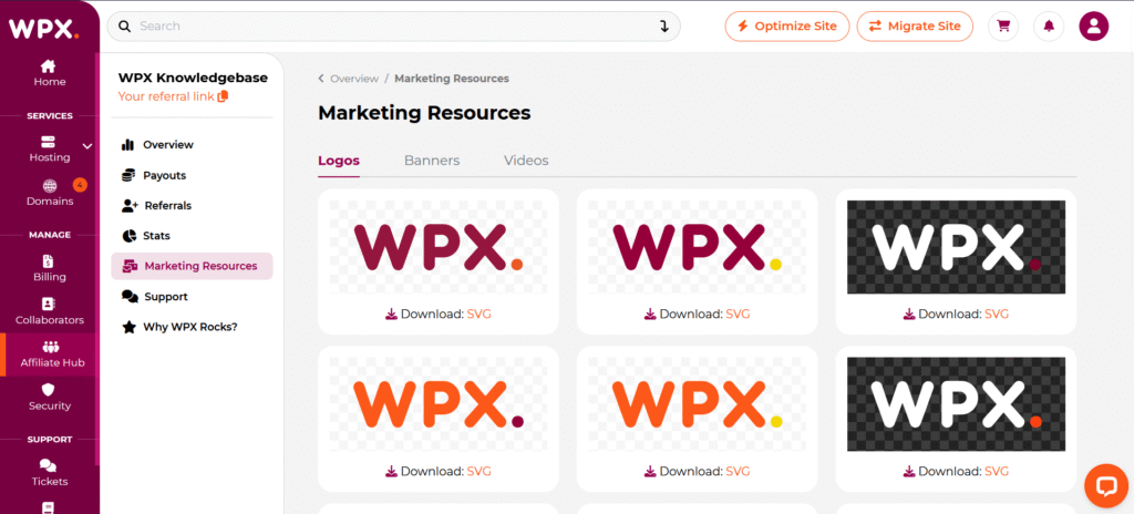 As a WPX Affiliate, you have access to a variety of banners, logos, and text links to help promote our services and earn commissions. Whether you’re promoting on your website, social media, or other platforms, we’ve made it easy for you to access and use these materials.