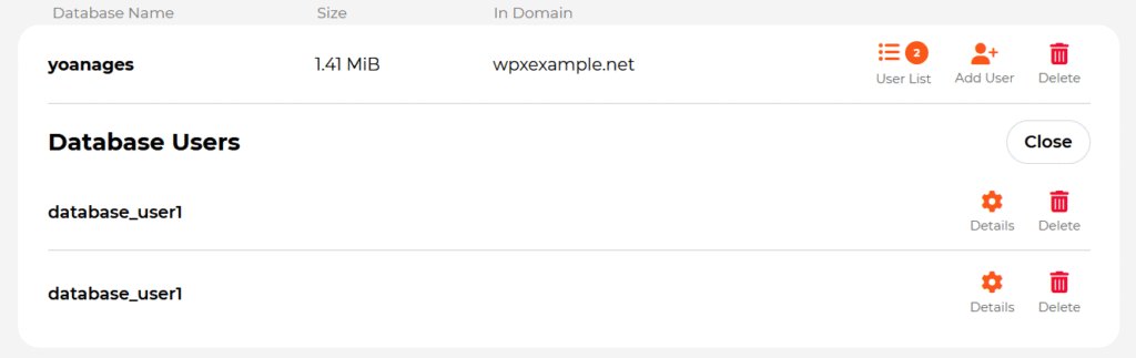 If you’ve created a database user for a developer, third-party tool, or testing purposes and it’s no longer needed, you can remove it quickly through the WPX Control Panel.