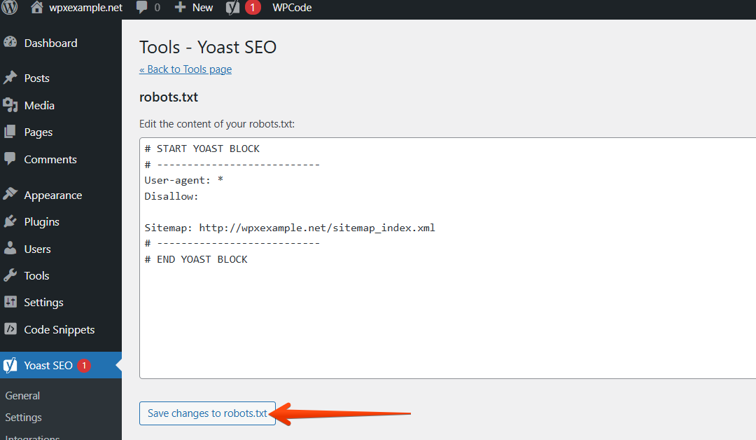 Once the changes are made, you can choose to Save changes to robots.txt.