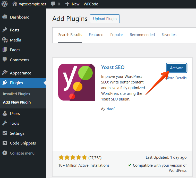After you install the plugin, you need to Activate it.