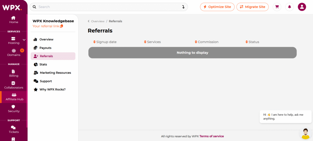 In the Affiliate Hub, click on the Referrals menu. Here you’ll find all the important details related to your referrals, including.